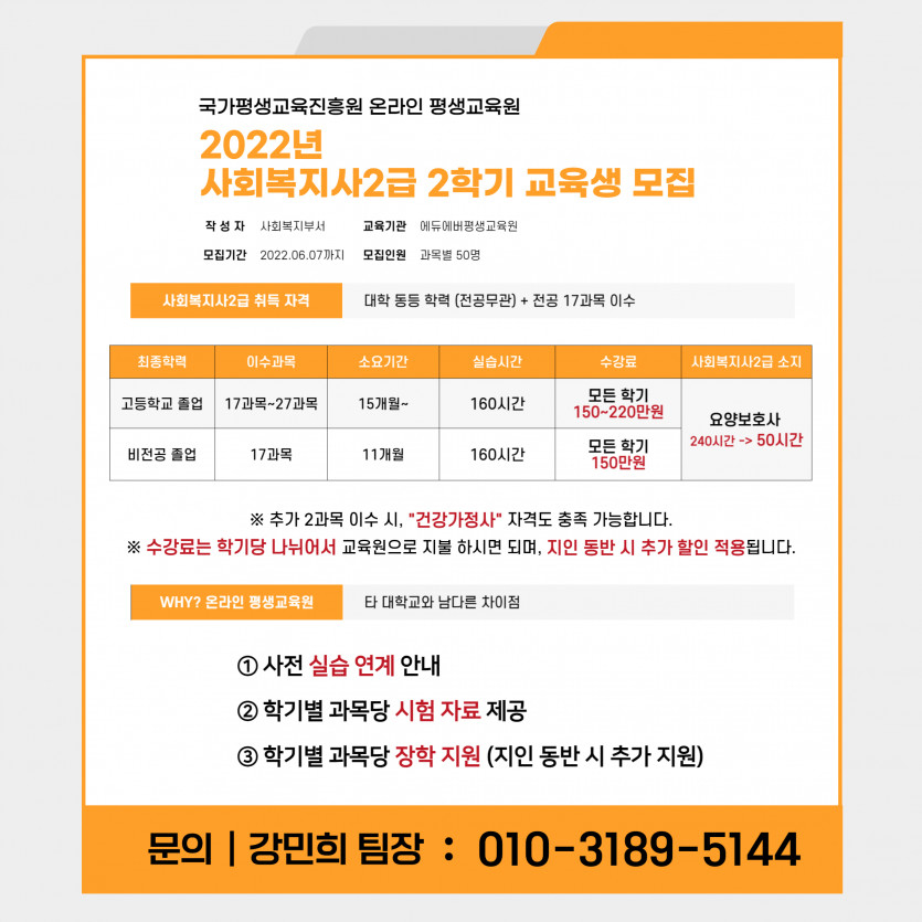[2학기 모집] 사회복지사, 신학기 추가 장학 혜택